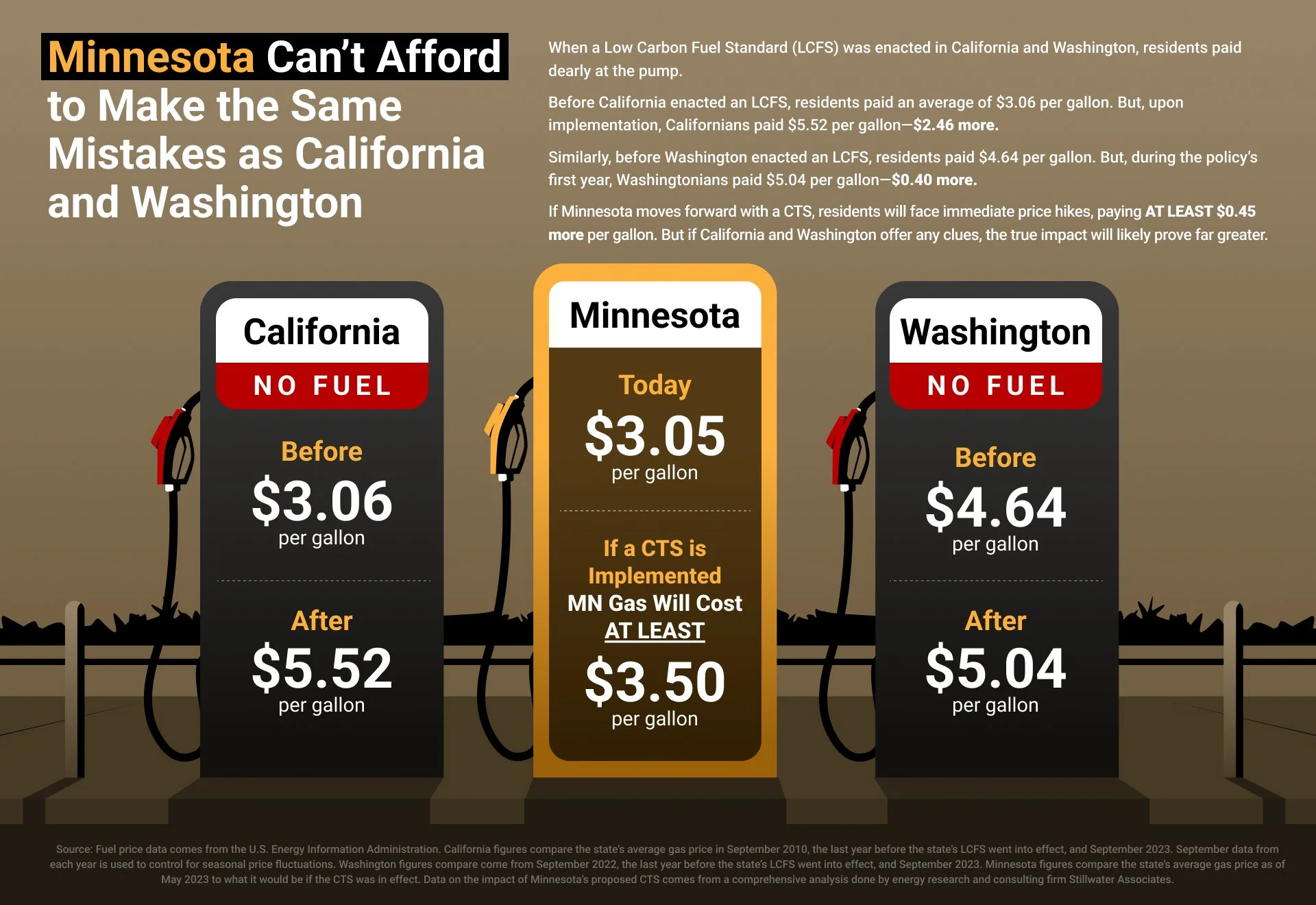 Minnesota’s farmers, truckers, manufacturers, and commuters depend on dependable and reasonably priced fuel to do their jobs and support their families. Policies that deliberately raise fuel prices threaten that stability and make it harder for businesses to operate and grow in our state.